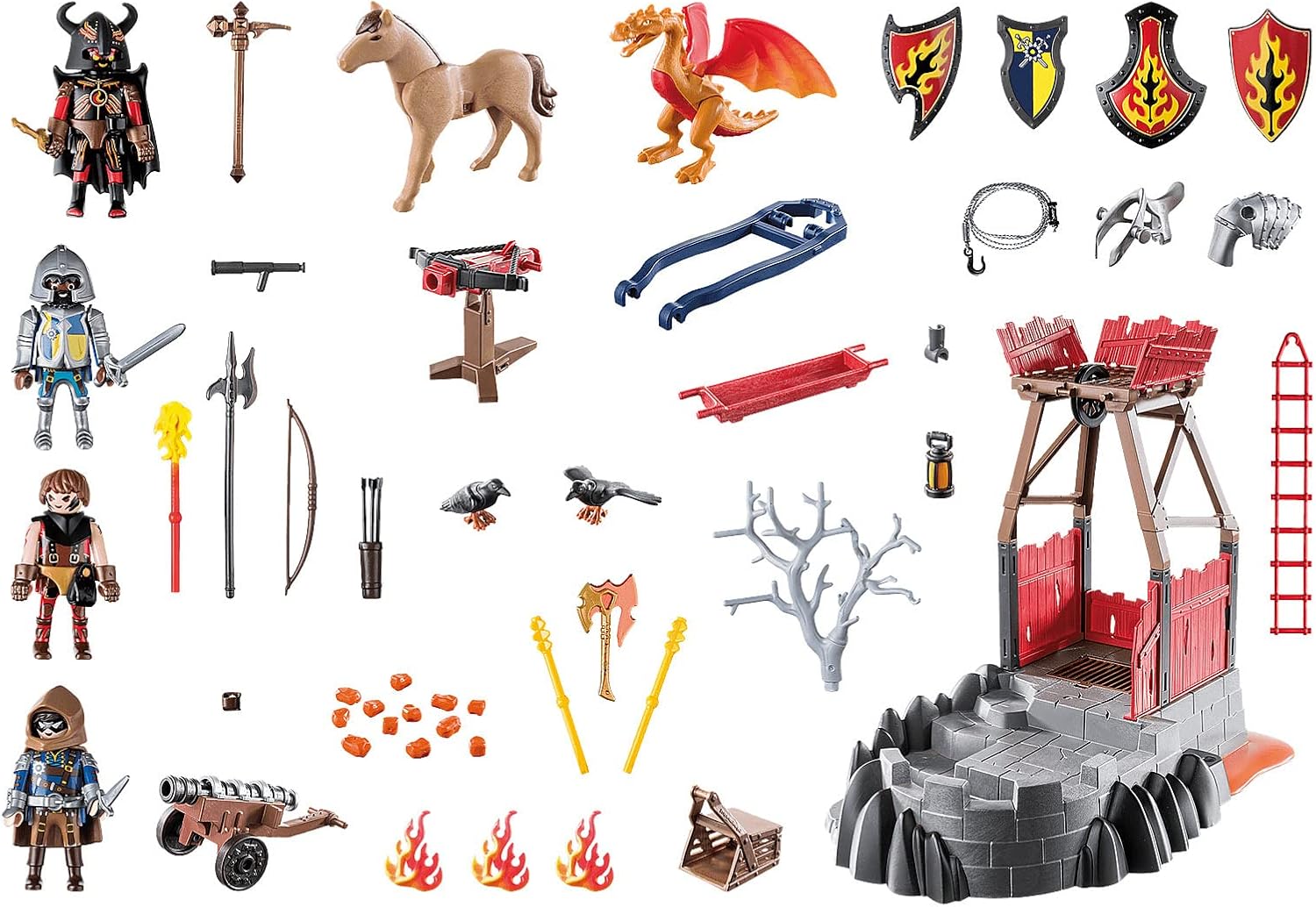 Le set comprend deux bandits des Burnham Raiders, chacun prêt à partir à l’aventure. Dotés de leurs accessoires et de leurs armes, ces hors-la-loi sont toujours à la recherche de nouvelles façons de semer le chaos dans le royaume. À leurs côtés, deux valeureux chevaliers de Novelmore, représentant la bravoure et la loyauté, se tiennent prêts à défendre le bien. Ces personnages dynamiques permettent aux enfants de recréer des histoires légendaires ou d’inventer les leurs.