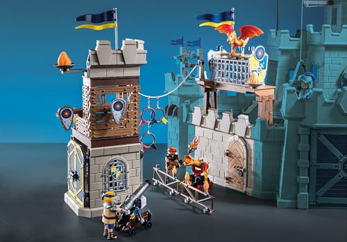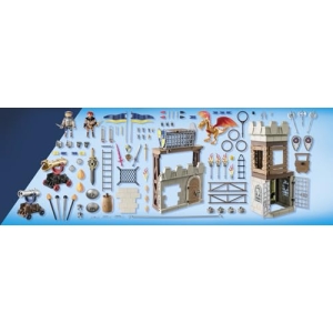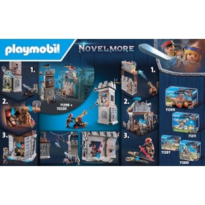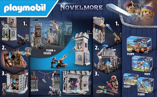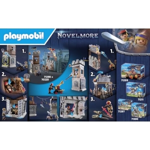 R : Oui, ce set est conçu pour être un complément au grand château Novelmore (référence 70220) et peut être intégré à d’autres ensembles Playmobil.