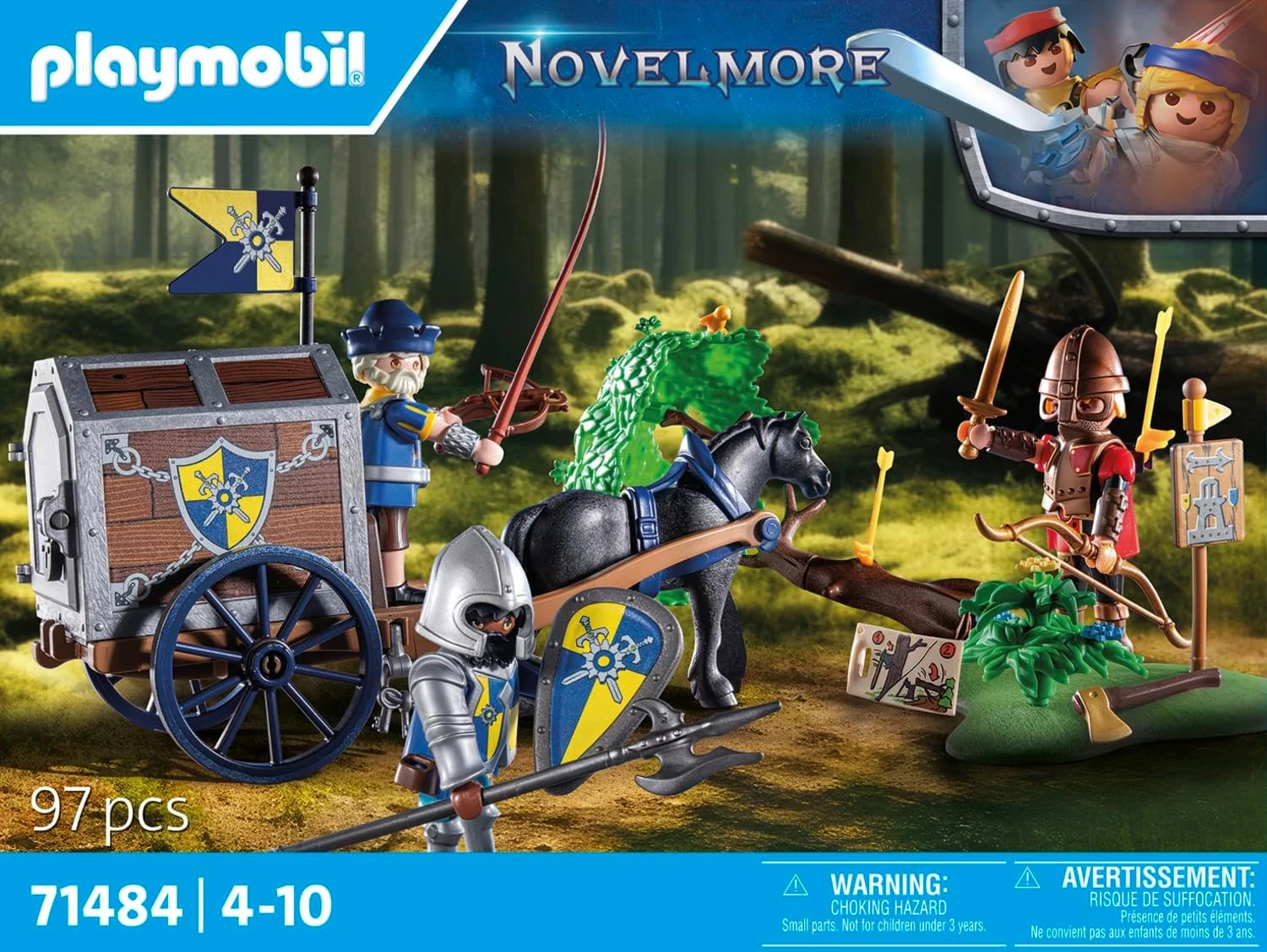 Plongez-vous au cœur d’une expérience de jeu immersive avec le coffret PLAYMOBIL 71484 Convoi de Novelmore avec Bandit. Ce set captivant vous transporte dans un univers médiéval où les chevaliers de Novelmore doivent défendre leur royaume contre les attaques des redoutables Burnham Raiders. Préparez-vous à vivre des aventures palpitantes remplies de courage, de loyauté et d’une touche de magie !