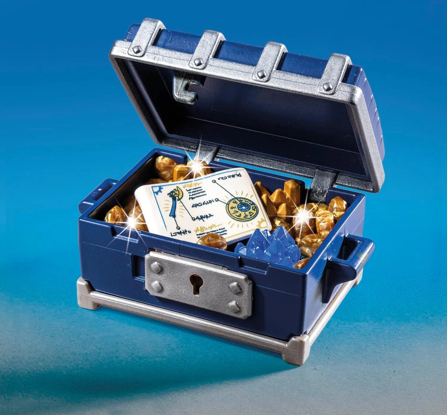 Le coffre au trésor peut être verrouillé et contient de l’or ainsi que des plans secrets pour des armes.