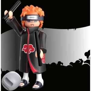 Pain, également connu sous le nom de Nagato, est un personnage central de « Naruto Shippuden ». Ancien chef de l’Akatsuki et du village d’Ame, il aspire à imposer la paix mondiale en faisant vivre aux autres la douleur de la guerre. La figurine Playmobil capture avec précision son apparence emblématique : cheveux rouges, bandeau frontal et manteau noir orné de nuages rouges, symbole de l’Akatsuki.
