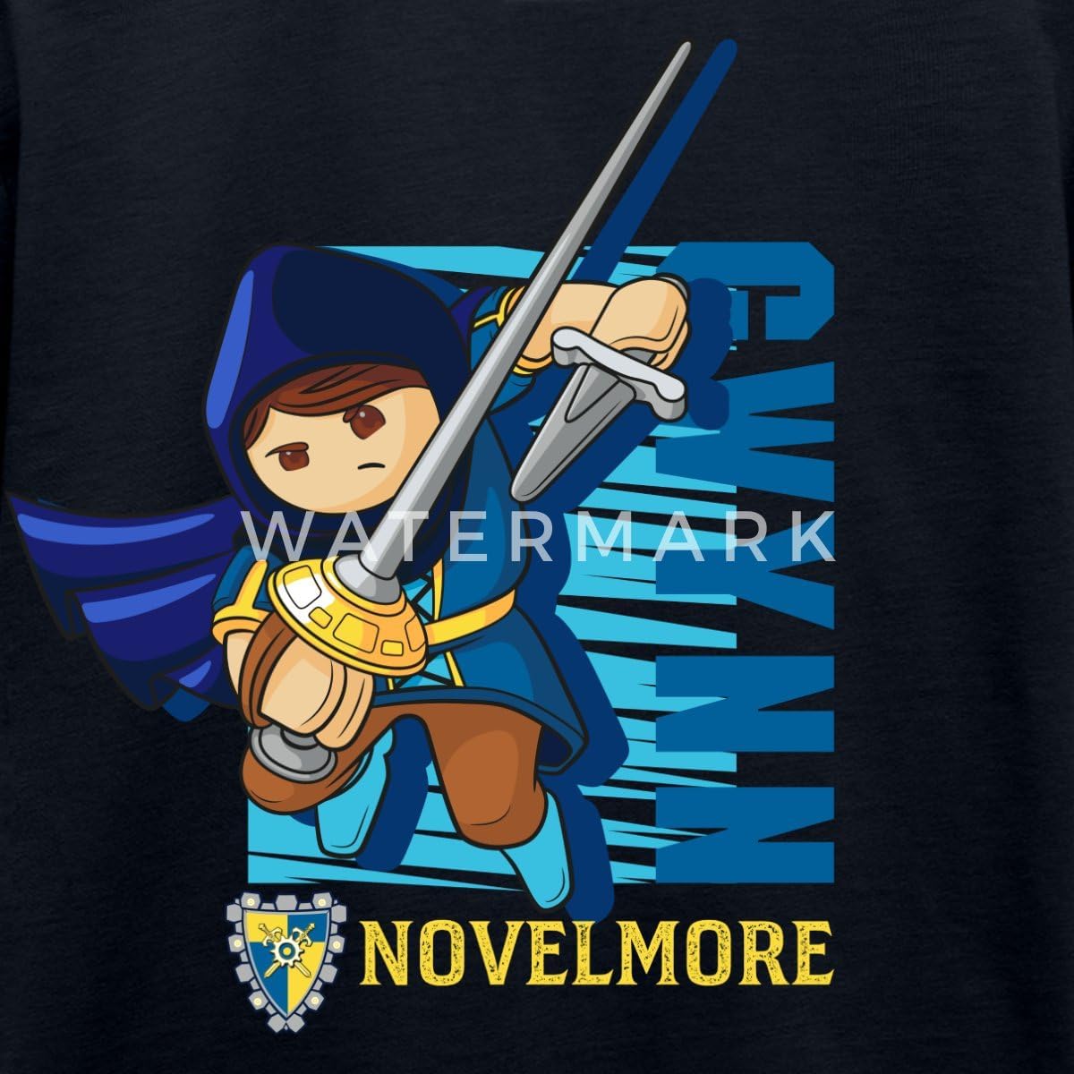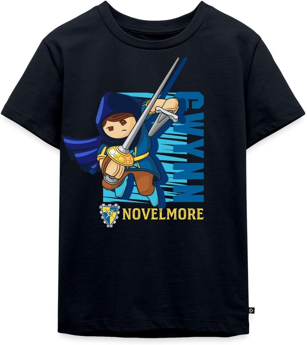 Gwynn est l’un des personnages principaux de la série Playmobil Novelmore. Reconnue pour son courage et son esprit rebelle, elle est toujours en première ligne lors des batailles, équipée de son épée et de son arbalète. Ce t-shirt met en avant son image, permettant aux enfants de porter fièrement leur héroïne préférée.