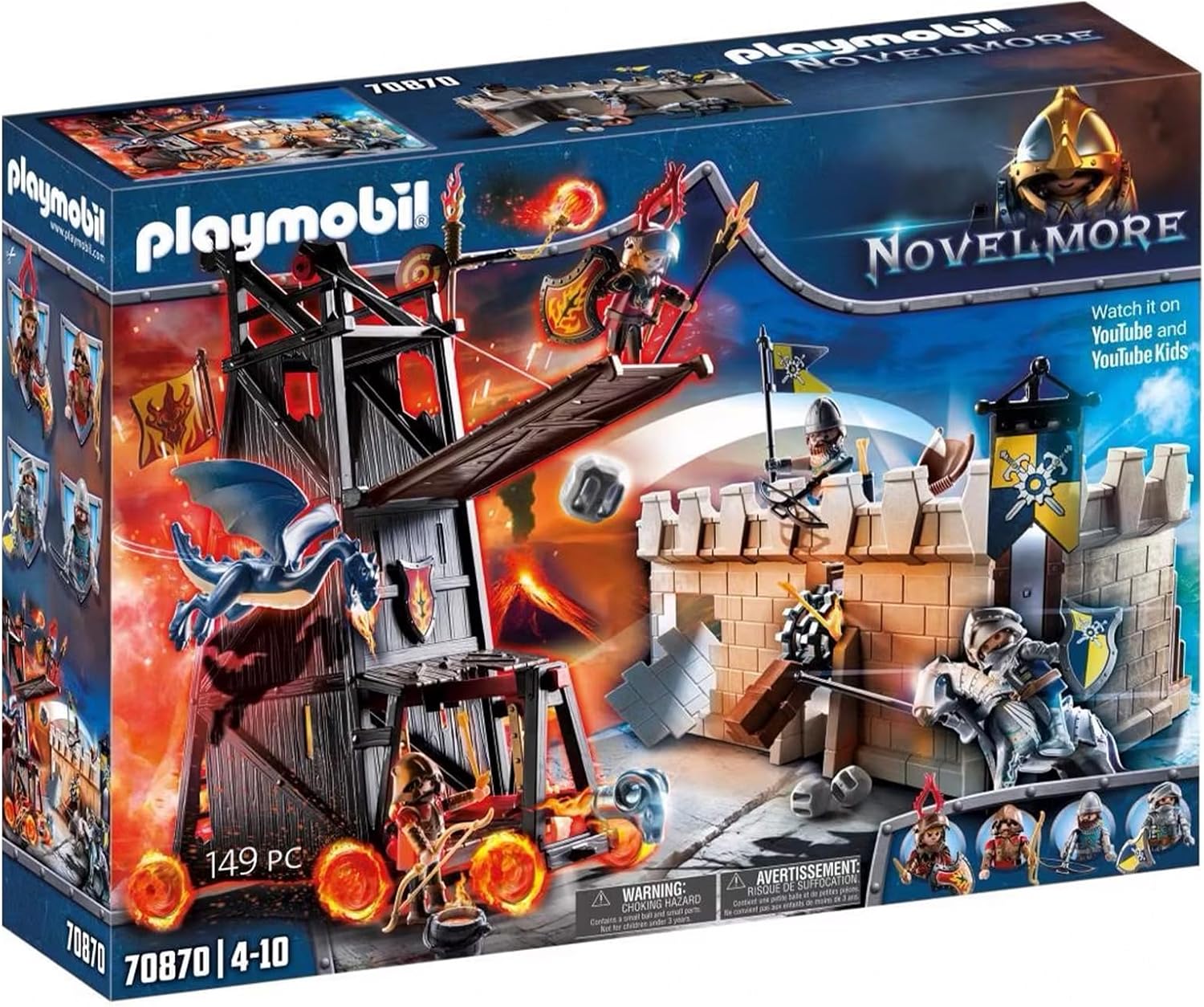 Plongez au cœur de l’univers médiéval de Novelmore avec le set PLAYMOBIL® 70870 – Jeu d’attaque avec tour de bataille. Ce coffret riche en détails invite les enfants à recréer des batailles épiques entre les redoutables Burnham Raiders et les vaillants chevaliers de Novelmore.